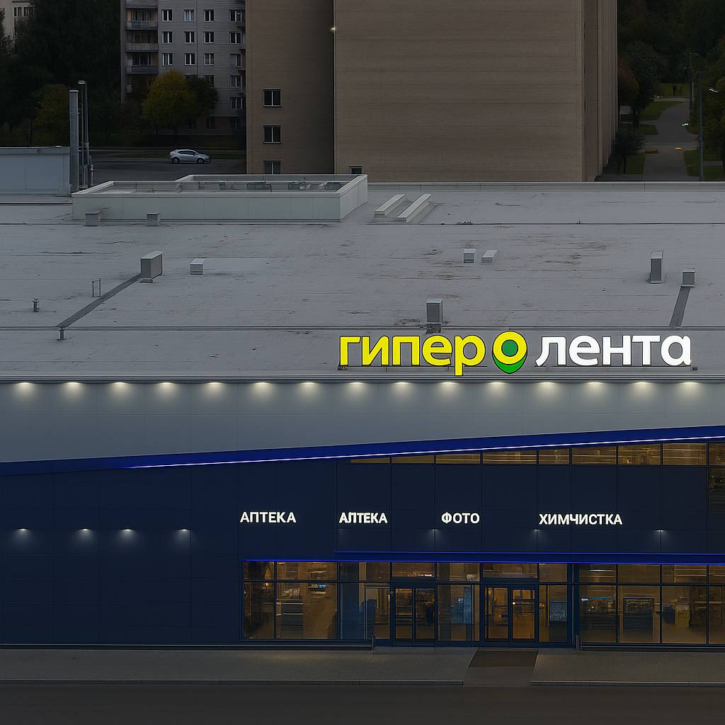 По занятой под помещение площади «Лента» является одним из крупнейших гипермаркетов в стране. Строительная компания ООО «СфераСтрой», входящая в ГК «Сфера» провела комплекс кровельных работ по демонтажу пришедшего в негодность старого покрытия и монтаж устройство нового тепло и гидроизоляционного покрытия. Было привлечено 2 бригады и 7 единиц проф оборудования для монтажа гидроизоляционного покрытия . Работы велись круглосуточно и работали в 2 смены.