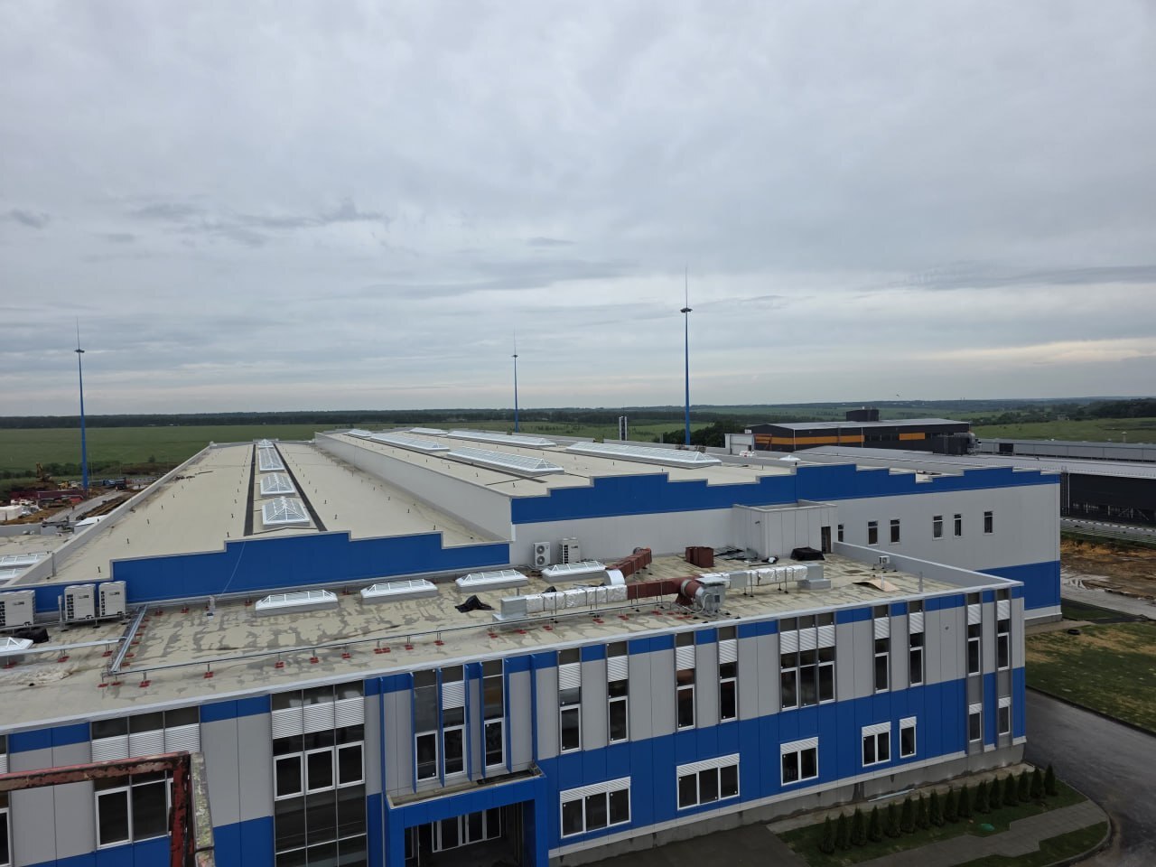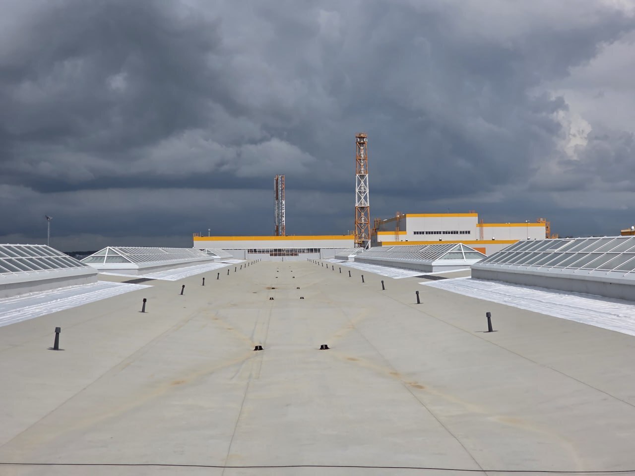 Компания «СфераСтрой» провела полный комплекс работ по монтажу кровельного покрытиявключая монтаж профнастила, системы кровельного покрытия, монтажу зенитных фонарей из ЛСТК, устройству пешеходных дорожек и обеспечению объекта высокотехнологичными материалами и комплектующими для бесперебойного проведения работ.